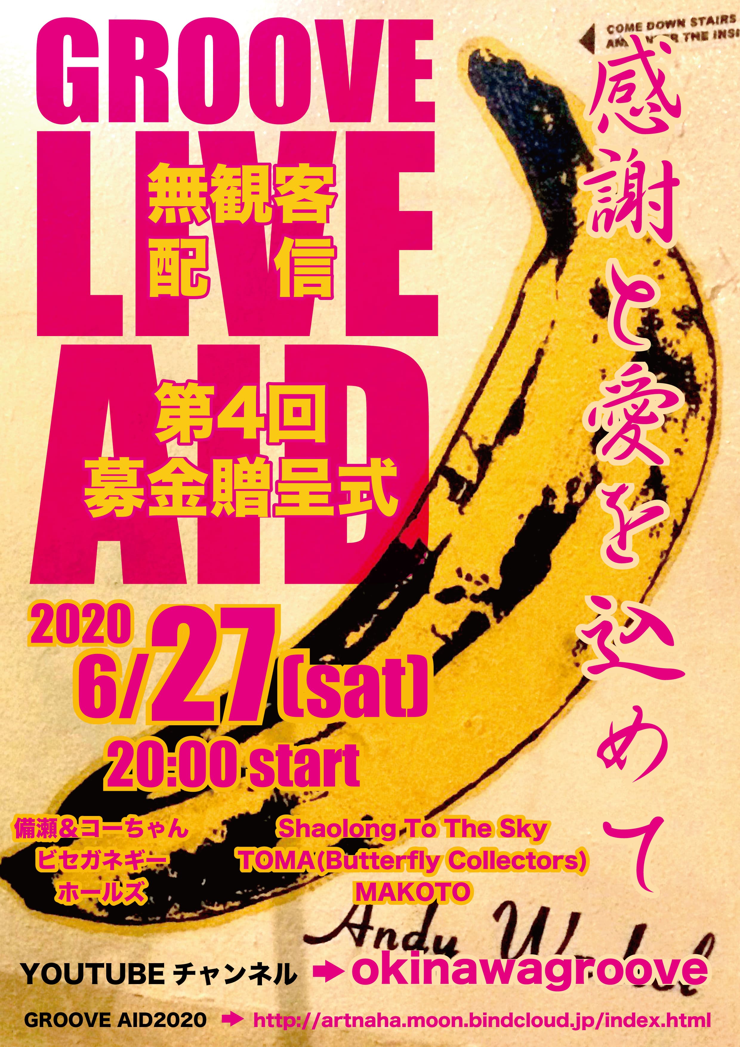 今年3月下旬から、新型コロナウィルス感染拡大に伴い、浦添グルーブも次々とライブがキャンセルされ、営業停止を余儀なくされました。国や県などからの支援策は遅く、このまま営業が出来ない状態が続けば、グルーブが無くなってしまうかも知れない。グルーブに育てられた私たち、ミュージシャンたちが大切な場所を守るべく立ち上げたのがこの支援活動でした。その甲斐あって、日本全国から多大な温かい支援を頂くことが出来、守ることが出来ました。ご協力頂いた全ての皆様に、この場を借りて御礼申し上げます。本当にありがとうございました。 6月現在、浦添グルーブは、営業を再開しました。もちろん、以前の状態の様にはいきませんが、細心の注意を払いつつ、少しずつライブが行われています。 そこでこの度、6/27(土)に第4回募金贈呈式と同時にライブ配信を行うことを企画しました。この募金活動にご協力頂いた全ての皆様に感謝と御礼の気持ちを込めて、グルーブから音楽を届けます。是非ご覧下さい。 この支援活動はこれにて終了しますが、本当の目的は、グルーブという箱で、音楽を演奏して社会に届けていく事が、ミュージシャンの使命。そのような環境を無くしてはいけない。その様な環境を脅かす事から守らなければならないということなんです。それを脅かすような事がまた起こったら、また立ち上がりましょう。その時にはまた是非ご協力お願いします。芸術文化を守るために。 groove future live 実行委員一同